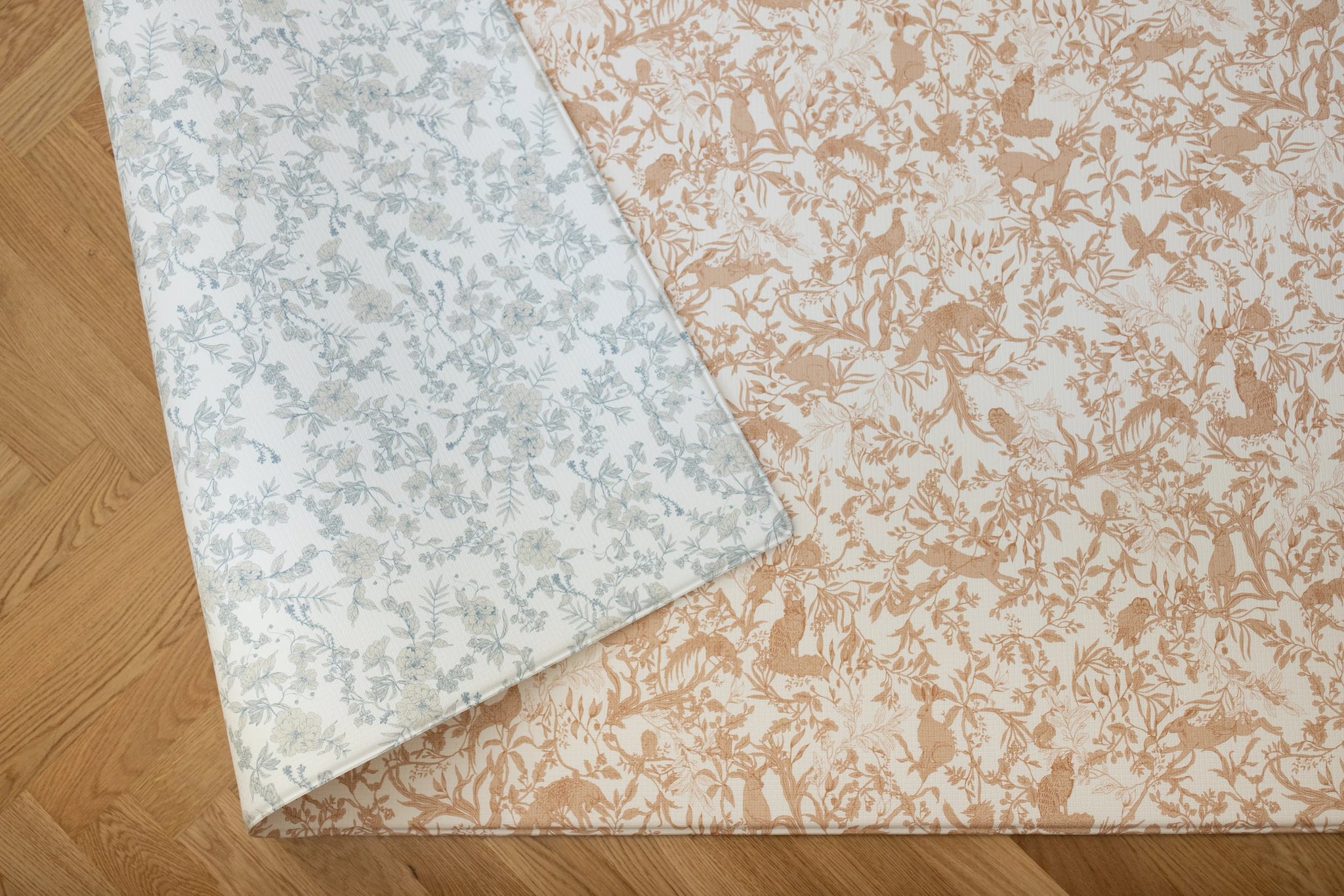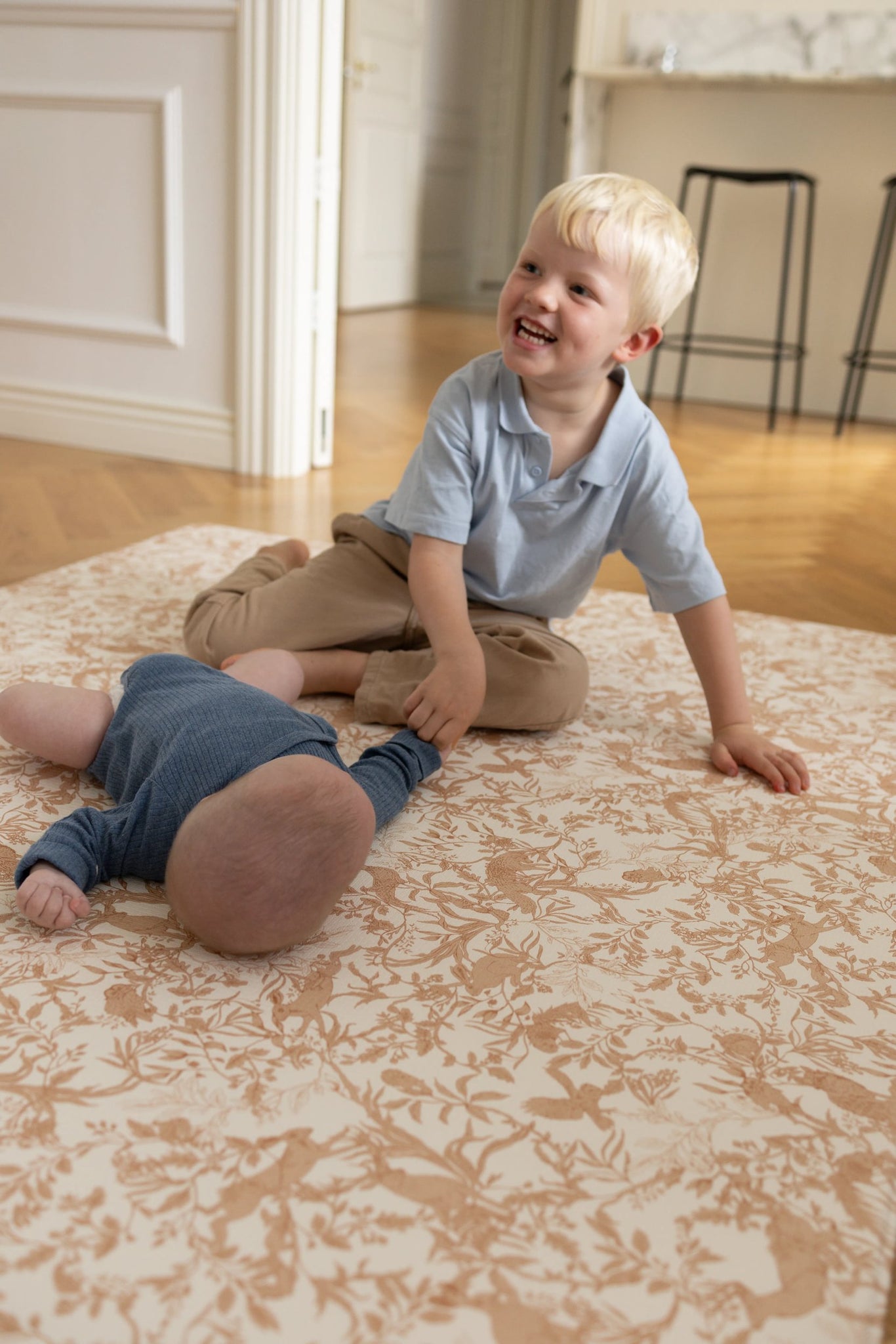 Der er så mange ting til vores børn i iøjnefaldende, kraftige farver. Vi har i stedet skabt disse måtter for at få lidt elegance ind i legemiljøet. Hver måtte er vendbar og har to unikke design, der er skabt af vores dygtige designere, så du hver dag kan vende den og vælge den stil, der passer til dit humør.