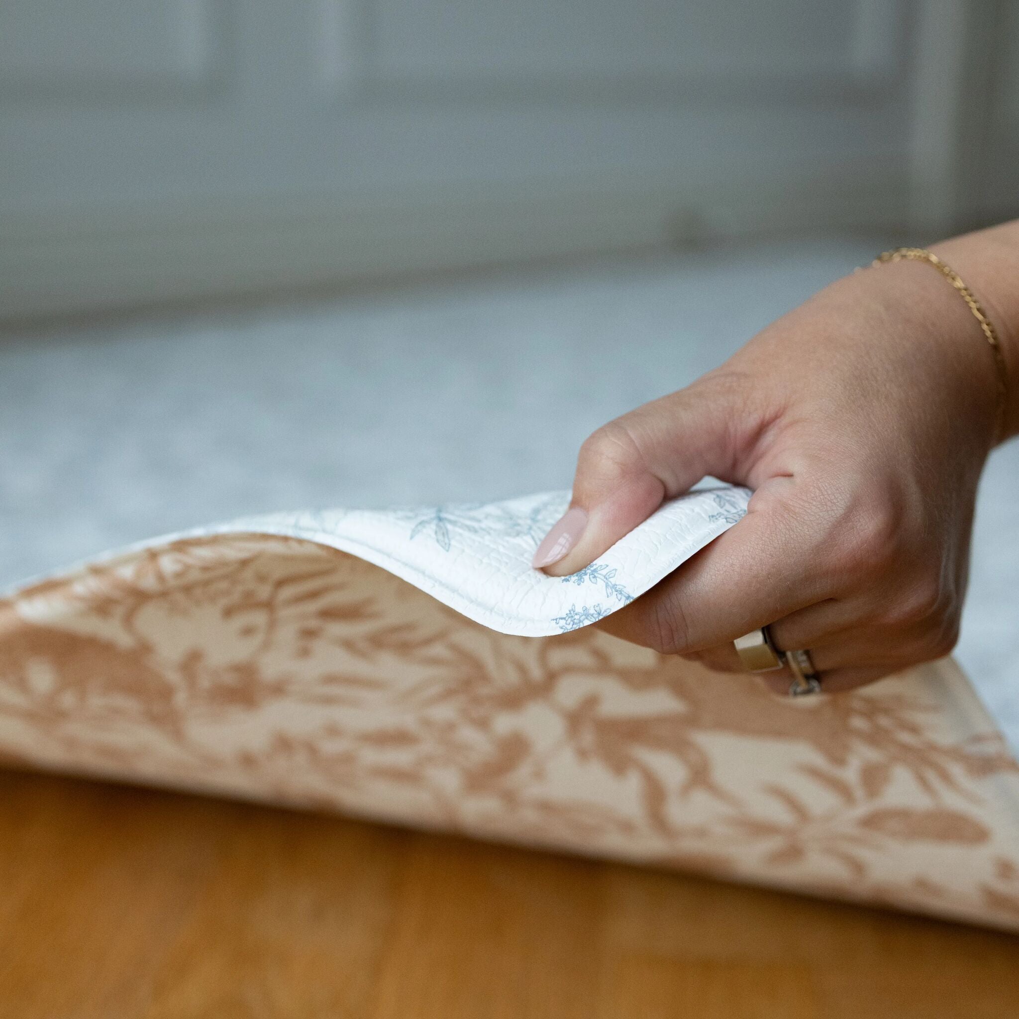 Alle vores måtter har to flotte designs, inspireret af den smukke nordiske natur. På bagsiden af Secret Garden er Woodland Wonders.